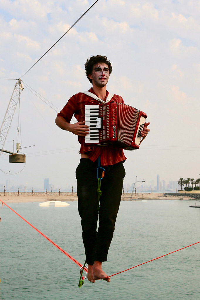 Until recently, slacklining was not a part of the circus world. Bringing the balance art to circus and theatre since 5 years, Dan uses control and finesse to execute never before seen feats up in the skies and down on the streets.
